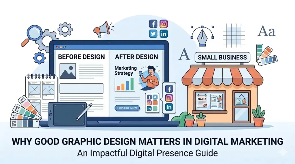 An informative guide explaining how good graphic design improves digital marketing results. This blog explores how strong visuals attract attention, build trust, and help businesses communicate their message more effectively online.